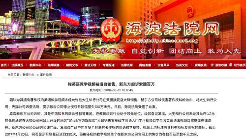 - 新東方以侵害著作權爲由,起訴索賠百萬03-26