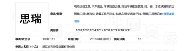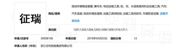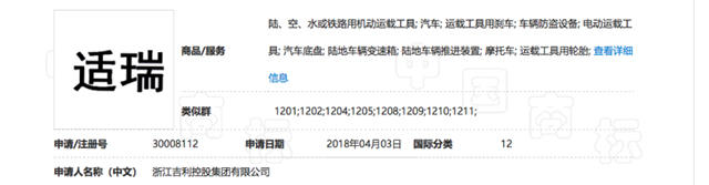 據獲悉,吉利汽車(chē)在中國商标局注冊了包括征瑞、适瑞、思瑞、華瑞等多個(gè)名稱的(de)商标,将預示著(zhe)吉利汽車(chē)未來推出的(de)全新轎車(chē)有(yǒu)望采用(yòng)以下的(de)命名方式。